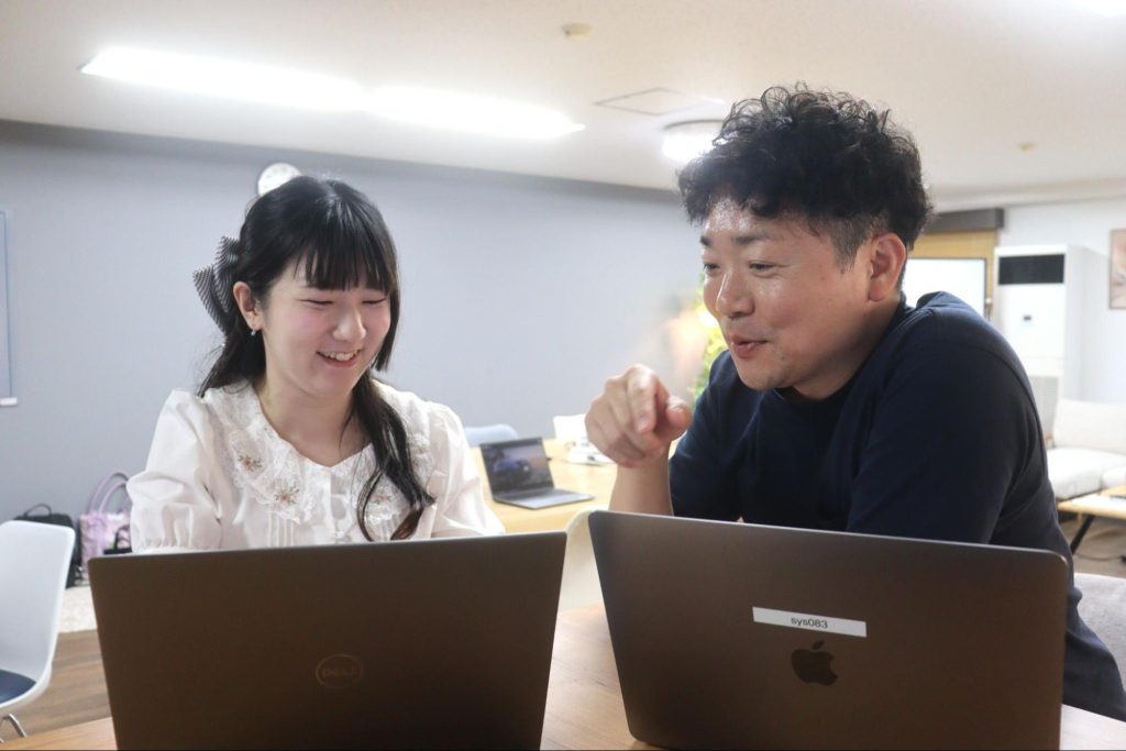 藤田社長とのカジュアル面談の中で笑いがあったり、社内の様子を丁寧に説明していただいて、本当に人間関係良さそう、みんな仲良くて密に連携とってるんだなっていうのを感じられたのが入社の決め手になりました。